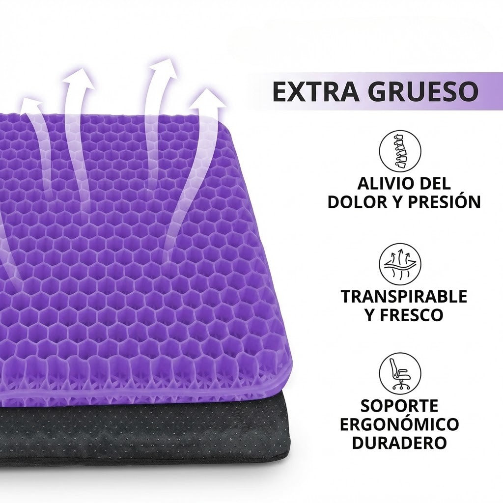 La mayoría de los cojines de gel utilizan una sola capa fina de gel que se comprime rápidamente bajo el peso corporal. Zenaviva utiliza dos capas completas de gel en forma de panal, superpuestas, lo que se traduce en una mayor absorción de la presión, una mejor distribución del peso y un cojín que mantiene su forma a largo plazo, incluso con un uso intensivo diario.
